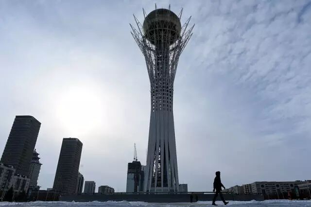 这是1月22日在哈萨克斯坦首都阿斯塔纳拍摄的巴伊捷列克塔。新华社发