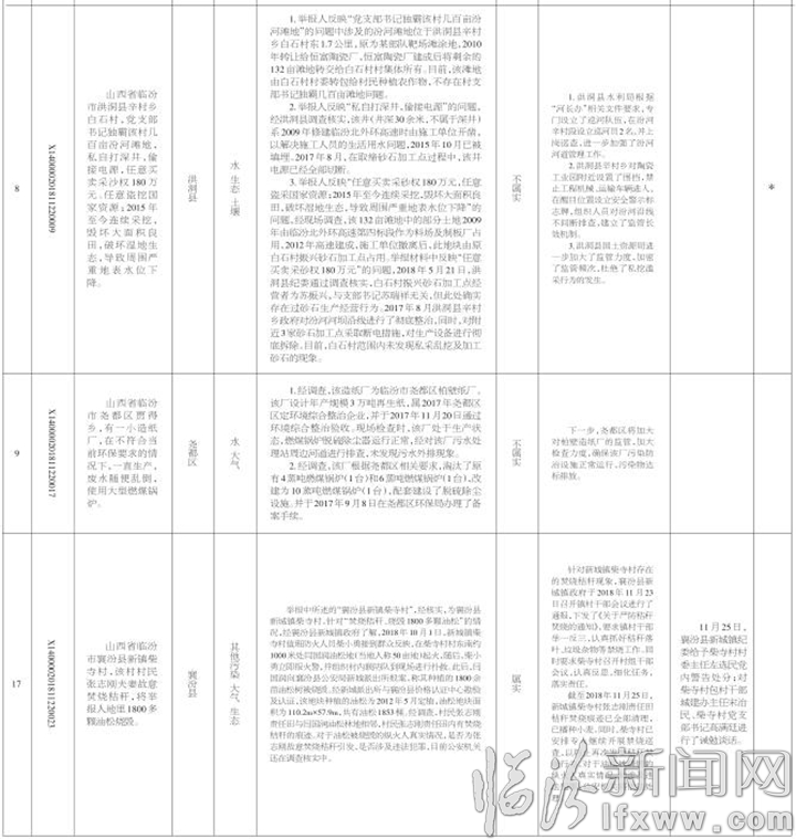 临汾市关于中央生态环境保护督察“回头看”交办群众信访举报问题边督边改情况通报