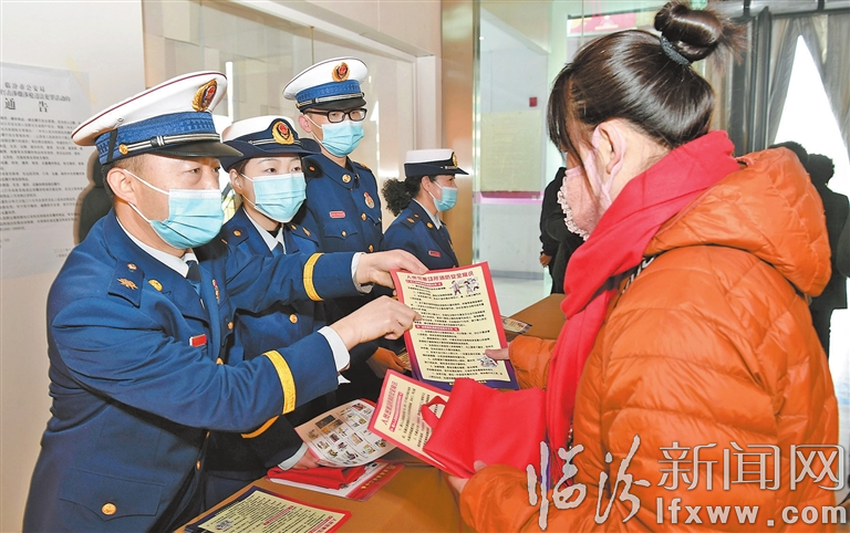 临汾新闻网讯 为确保春节期间消防安全,连日来,临汾市消防救援支队积极开展形式多样的消防宣传活动,不断提升基层消防安全群防群治水平。图为消防队员正在向市民讲解消防安全知识。