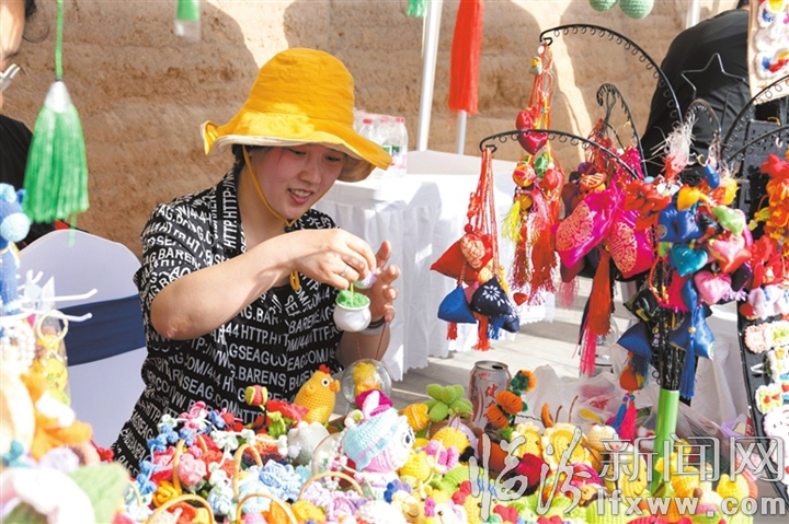 临汾新闻网讯 4月4日至6日,我市在市区古城墙举办“春来好去处·漫游古城墙”文旅活动,将踏青赏春的习俗与临汾厚重的历史文脉深度融合,为市民游客献上一场有温度、有新意的文旅盛宴。图为一位手工编织艺人在摊位上制作毛线玩具。