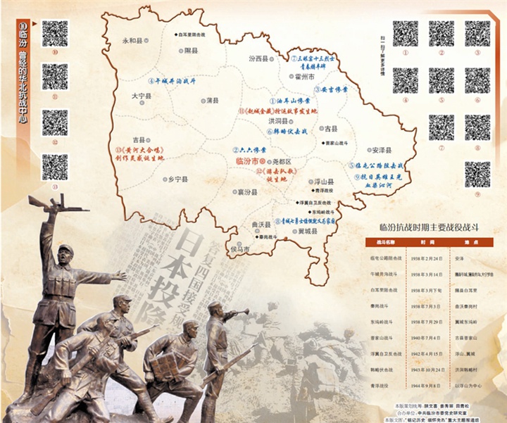 烽火地图,临汾印记。今天,我们将两个月的记录,浓缩成一张报纸,绘就成一幅地图,就是为了让更多的人用最便捷的方式、最直观的视角铭记历史、缅怀先烈、奋发向上;就是为了让战火中闪耀的光辉,穿越八十年时光,与今日的我们相遇;就是为了让那些曾深藏于史料的英雄与故事走出来,变成可触可感的精神坐标。