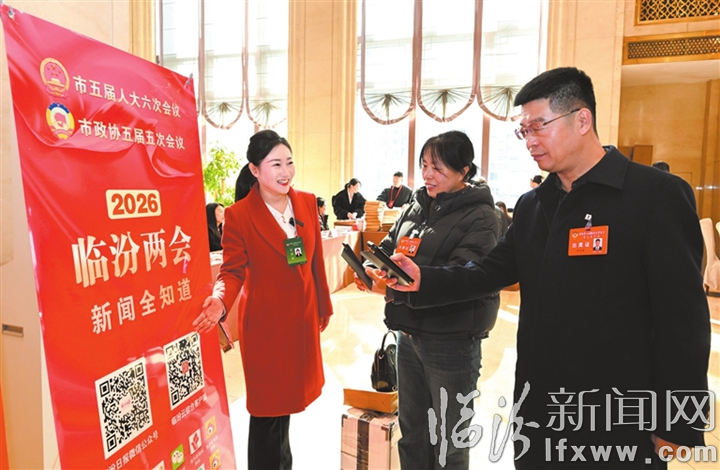 图③为委员通过关注“临汾日报”微信公众号、“临汾云”综合客户端了解两会相关新闻。