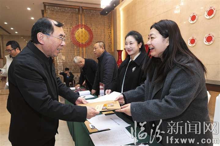 临汾新闻网讯 肩负使命赴盛会,怀揣民意传心声。1月23日上午,出席市五届人大六次会议的人大代表们满怀履职热忱、肩负群众嘱托,陆续抵达驻地,向大会报到。左图:代表正在签到。右图:代表在领取大会资料。