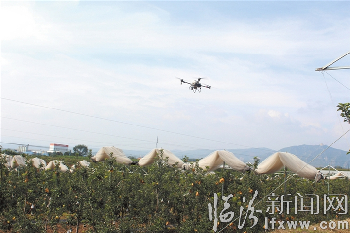苹果园里无人机作业场景