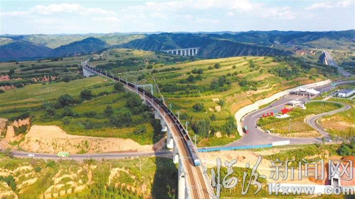 太岳腹地千万吨级物流枢纽初具雏形。图为行驶中的货运专列