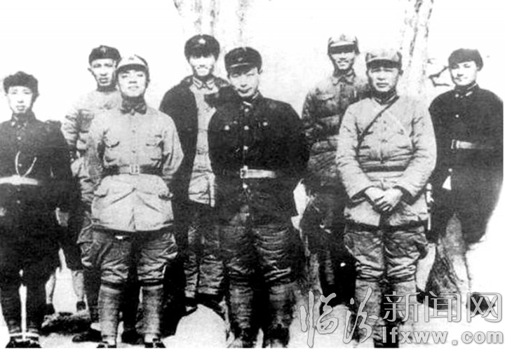 红一军团、红十五军团部分领导人的合影。左起:王首道、罗瑞卿、杨尚昆、程子华、聂荣臻、陈光、徐海东、邓小平。