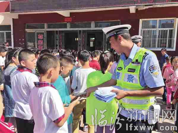 为丰富宣传内容,大队民警特意印制宣传彩页及给学生和学生家长的一封信,内容简单明了,通俗易懂,彩页插图生动形象,深受广大中小学生欢迎。图为民警深入县城关小学宣传交通安全知识。