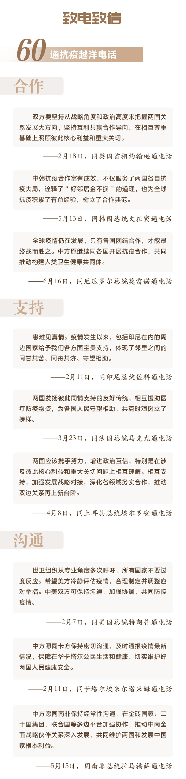 细数今年上半年,习近平夙夜在公,勤勉工作,不断刷新“忙碌指数”:数十次出席重要会议部署各项工作,8次国内考察,调研足迹遍及7省区市,3次出席国际重要会议并发表讲话,20余次致信、回信海内外人士,60次就疫情防控等话题与40余位外国政要和国际组织负责人通电话……人民网·中国共产党新闻网推出系列图解报道,带您全方面回顾习近平的2020上半年。