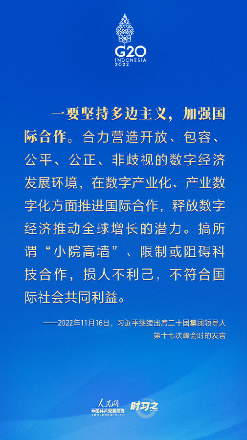 当前,数字经济规模扩大,全球数字化转型加速,成为影响世界经济格局的重要因素。新形势下,该如何激发数字合作活力,让数字经济发展成果造福各国人民,习近平提出三点“坚持”。