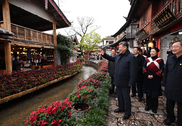 3月19日,习近平总书记考察丽江古城,详细了解古城营建历史、纳西族民居特色和当地文化遗产保护利用、推动文旅融合发展等情况。