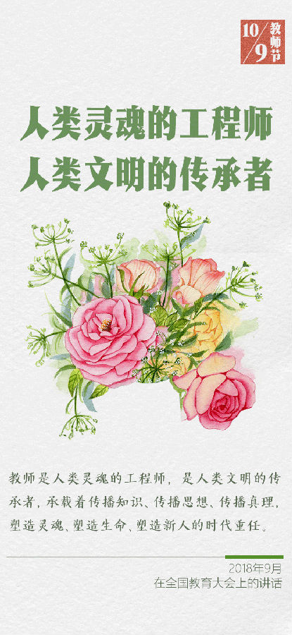 在第四十一个教师节到来之际,习近平总书记给全国特岗教师代表回信,提出殷切希望,并向全国广大教师和教育工作者致以节日祝贺和诚挚问候。