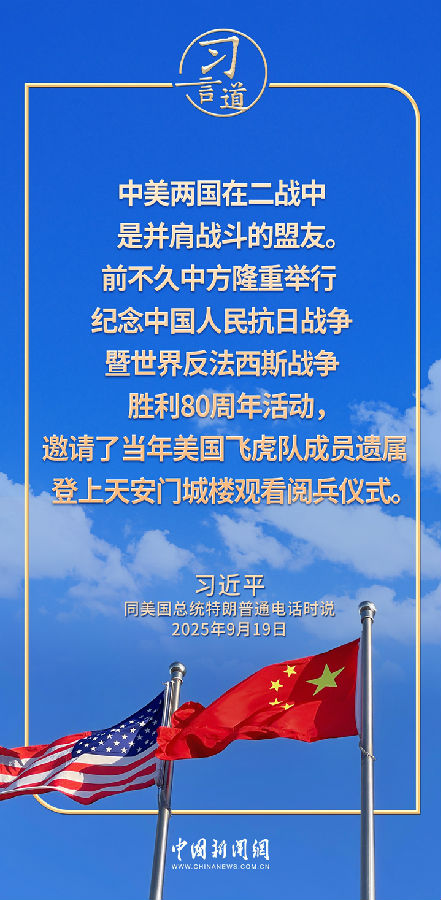 9月19日,国家主席习近平同美国总统特朗普通电话,就当前中美关系和共同关心的问题坦诚深入交换意见,就下阶段中美关系稳定发展作出战略指引。习近平指出——