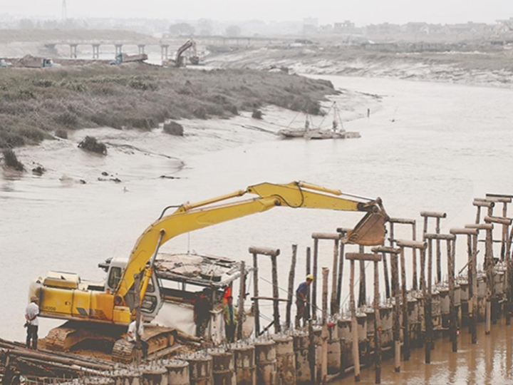 木兰溪防洪工程建设现场。(资料照片)
