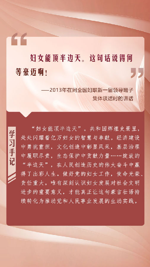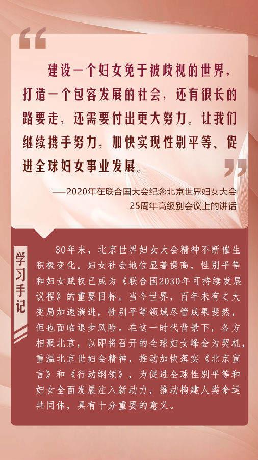 在全球妇女峰会即将举行之际,我们重温习近平总书记的重要论述,共同展望妇女发展的美好未来,期待全球妇女事业发展谱写新的绚烂篇章。