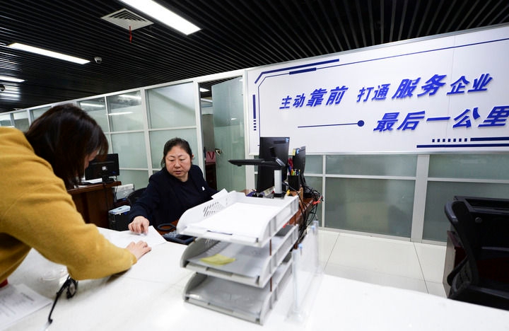 2024年11月7日,市民在安徽省马鞍山市政务服务中心企业服务中心办理业务。新华社记者 刘勇贞 摄