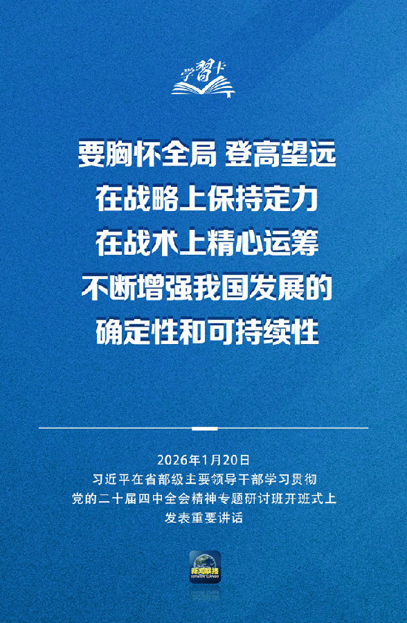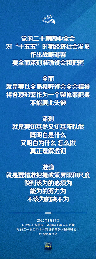 省部级主要领导干部学习贯彻党的二十届四中全会精神专题研讨班20日上午在中央党校(国家行政学院)开班。中共中央总书记、国家主席、中央军委主席习近平在开班式上发表重要讲话强调,要把学习贯彻党的二十届四中全会精神不断引向深入,更好统一思想、凝心聚力,在党中央坚强领导下扎实做好各项工作,努力实现“十五五”良好开局。