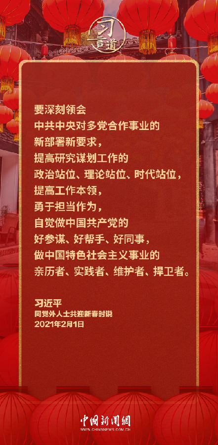 “多党合作舞台广阔、大有可为”“使新时代多党合作展现出勃勃生机”……在同党外人士共迎新春时,习近平总书记的重要讲话始终洋溢着对党外人士的关心,满载着对他们的期许。