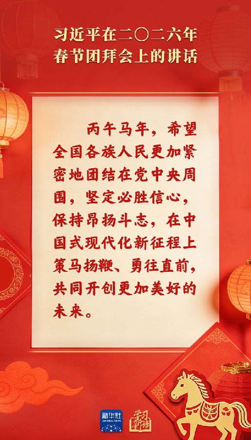 原标题:学习新语|策马扬鞭、勇往直前!2026年春节团拜会总书记讲话金句