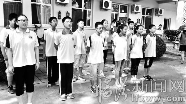 左图:同学们为老人们表演节目。