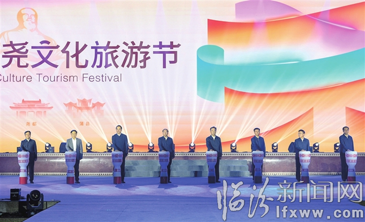 图为省、市领导共同启动尧文化旅游节开幕式按钮。记者 闫锐鹏 摄