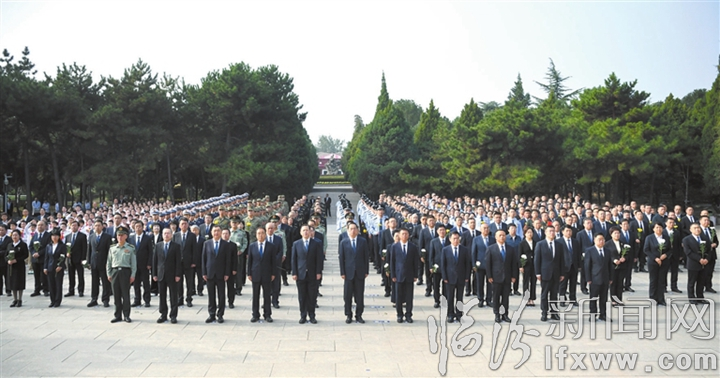 图为李云峰、王延峰等市党政军领导和社会各界代表参加烈士纪念日活动。 记者 闫锐鹏 摄