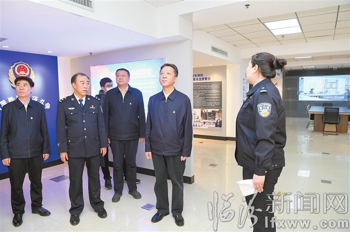 3月31日,市委书记闫晨曦深入市人大常委会机关、市政协机关、市公安局进行调研。他强调,市人大常委会、市政协要始终坚定正确的政治方向,围绕中心、服务大局,强化使命担当,加强自身建设,以更高的标准、更严的要求、更实的作风,努力开创新形势下人大、政协工作新局面,为我市高质量高速度转型发展作出新的更大贡献。全市公安机关要坚决扛起维护安全稳定的政治责任,严厉打击一切违法犯罪活动,努力建设更高水平的平安临汾,为全市高质量高速度转型发展营造良好的法治环境、社会环境、服务环境。图为闫晨曦在市公安局调研。记者 魏华 摄