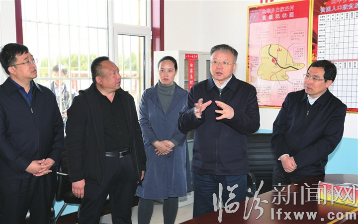 图为岳普煜在蒲县山中乡白家庄村调研干部进村服务工作情况。记者 赵俊堂 摄