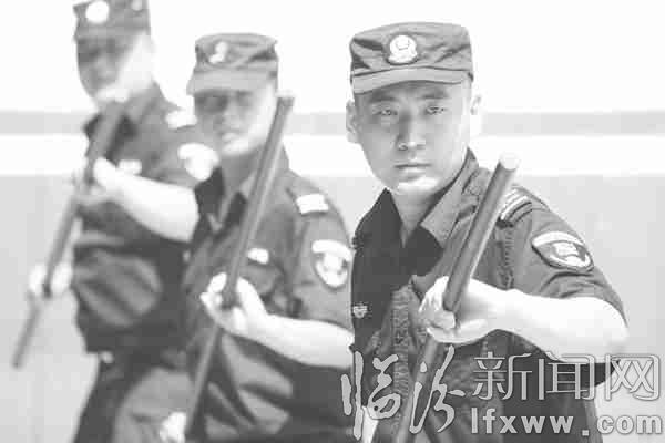 此次训练以贴近实战为目的,包括擒敌拳、棍术、盘查搜身、抓捕等战术。现场,一个握有凶器的“歹徒”冲向“人群”。三位队员见状,即刻紧密配合,一人手持警用防暴抓捕锁腰器将“歹徒”的腰部牢牢锁住,另一人手持警用防暴抓捕锁腕器将“歹徒”的小腿紧紧箍住。在“歹徒”动弹不得之际,一人迅速扑上去将其制服。