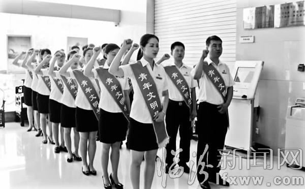 临汾新闻网讯 7月29日上午,晋商银行临汾分行营业部举办了省级“青年文明号”挂牌仪式。近年来,该分行以党建带团建为核心,不断创新活动载体,提升青年志愿服务水平,树立青年文明标杆,塑造了良好的企业形象。图为该分行员工齐唱“青年文明号”号歌。秦园 摄