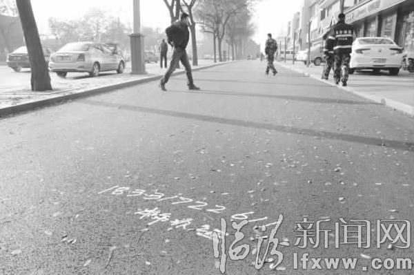临汾新闻网讯 11月24日,有市民反映,鼓楼北街非机动车道上被人为地喷涂了许多“办证电话”。记者随即来到鼓楼北公交车站点附近,看到非机动车道上喷着这样的字:本市办证电话183317226XX”。