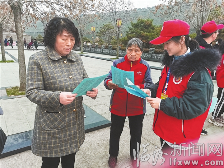 临汾新闻网讯 “讲社会公德,做一个好公民……”11月27日下午,山西师范大学物信学院“励耕”青年志愿者走进尧都区水塔街汾泽社区,向辖区居民、古城公园游客发放《临汾市创建省级文明城市应知应会知识》宣传单并详细讲解有关内容,号召大家一起行动起来,为“创城”贡献更多力量。