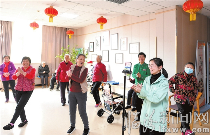 临汾新闻网讯 日前,在临汾正元养老院,老人们在工作人员带领下做快乐健身操。该养老院是一家医养结合的特色养老院,在为老人做好贴心服务的同时,结合实际精心安排健身活动,以有趣、参与度高的运动丰富老年人的精神世界,带动大家享受生活美好时光。