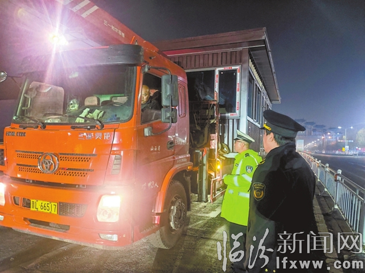 然而,一个个寒气袭人的夜晚,由市生态环境局执法人员和市公安局交警支队交警组成的4个城区重型运输车辆管控专项检查组,仍坚守在市区周边各大交通要道,讲解绿色示范区相关规定,劝导即将进入市区的重型运输车辆绕行……