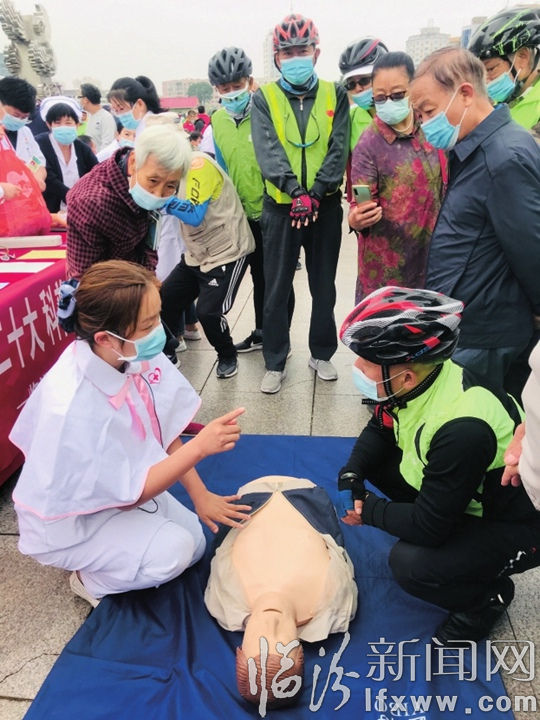 市科协组织市护理学会人员向群众教授心肺复苏急救技术