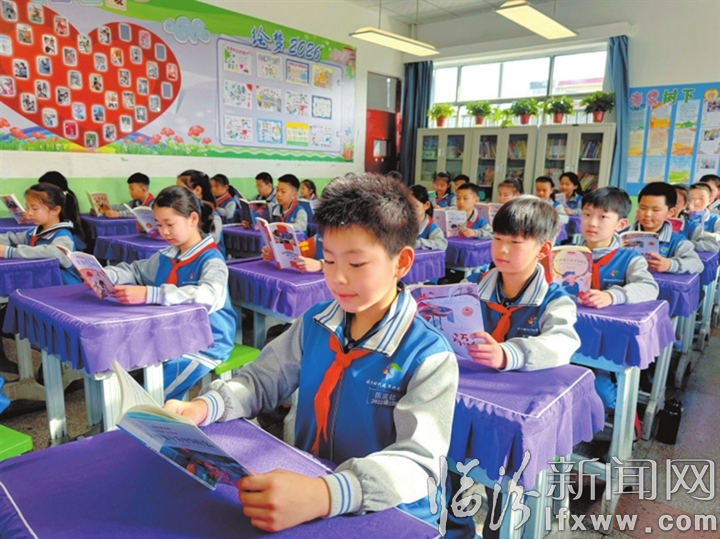 为推进“书香校园”建设,临汾时代风华特色学校持续开展“海量阅读”活动,不仅丰富了学生的精神世界,更让阅读成为一种生活习惯。图为4月20日该校阅读活动现场。