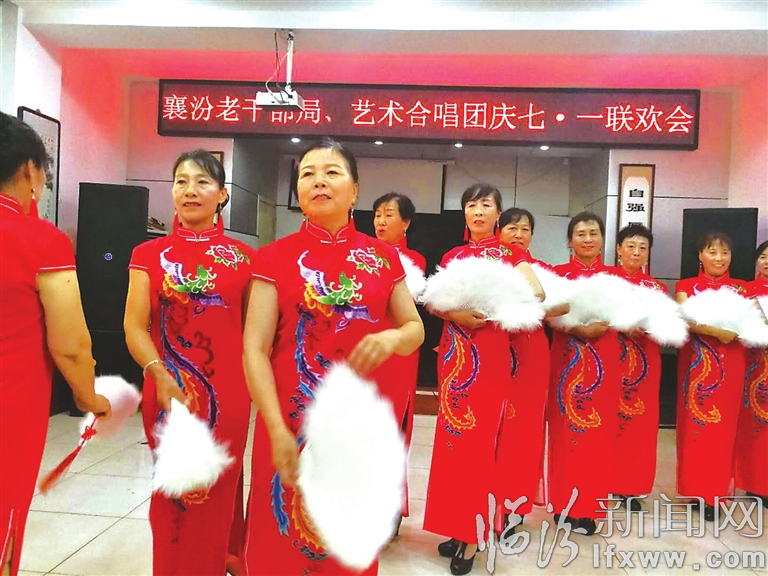 “七一”之际,襄汾县老干部局合唱团举行联欢会,老干部用歌舞抒发如火的激情,赞美祖国,歌唱伟大的中国共产党。(杨丽娟 吕婷婷 摄)