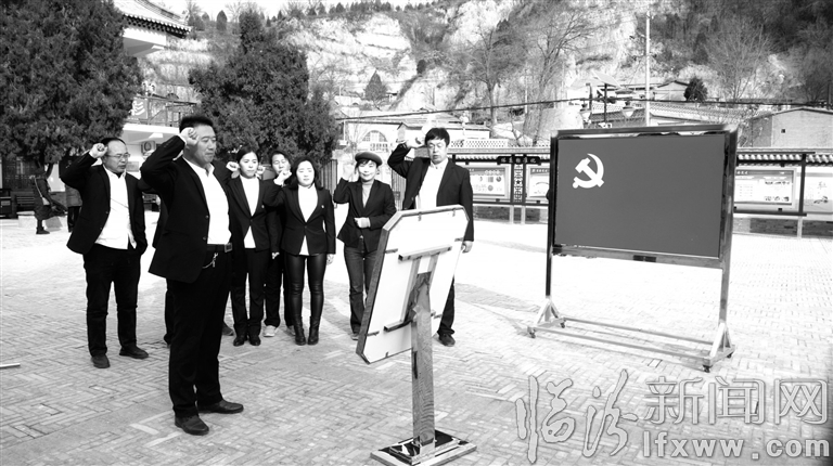 近日,大宁县太古小学的教师们来到延安市延川县梁家河村参观革命传统教育基地。在参观了延安革命纪念馆后,教师们纷纷表示,一定要不忘初心、牢记使命,以艰苦奋斗延安精神教育好学生。图为教师们在党旗下庄严宣誓。