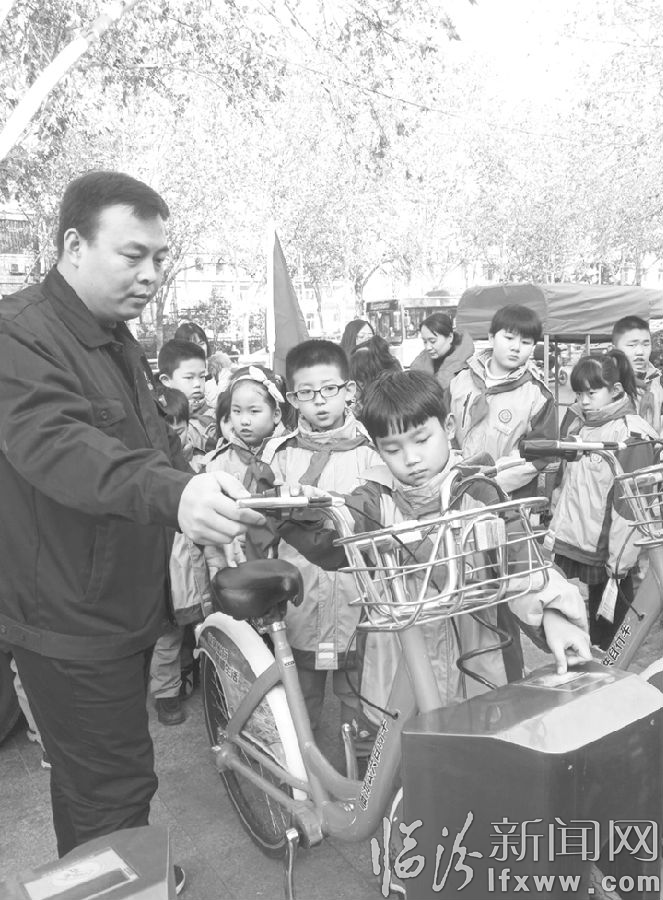 临汾新闻网讯 寒假期间,为进一步增强青少年的环保意识,培养其爱护公共设施的良好习惯,临汾市临钢小学二(3)班的同学在席老师的带领下,来到临汾公共自行车运营中心,参观了公共自行车卡务大厅、调度指挥中心,并在工作人员的指导下体验如何借还公共自行车。