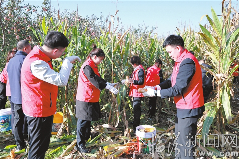 临汾新闻网讯 面对当前秋粮收获的紧迫情况,浮山农商银行近日组织青年员工组建起助农抢收志愿队,走进田间义务帮助有困难的农民收获秋粮,确保颗粒归仓,努力将损失降到最低。图为劳动现场。