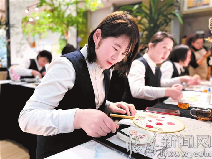 临汾新闻网讯 近日,霍州农商银行工会组织基层一线女员工放下繁琐的工作,亲手制作压花团扇,将春日芳华定格于独一无二的团扇之上,在非遗手工制作中体验乐趣、邂逅美好。图为制作现场。