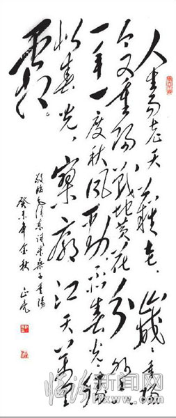 从春到冬,年复一年,总是如此。书作等身的苦苦历练,自然成就了他笔下生花的艺术飞跃。所谓“思”者,乃郭正亮成功的关键之诀。古人云:“修在悟前,非真修也。”勤能补拙,然思则能悟道。郭正亮明白个中三昧,目识心记,避免无效劳动。他在临帖时,既有临摹,更重背临、意临,参研对照,分析优劣。通过“雁过拔毛”,找出自己的差距,悟出行进的方向,少走弯路。“容”者,是我觉得,郭正亮能兼容各家之长,用他自己的话来说,就是要想真正步入书法佳境,须有坚实的“字外功”。丰富的字外功是书家综合素质的源泉,要学会兼容并蓄,博采众长,为我所有,广积薄发。我看郭正亮先生在猎取“字外功”方面,主要有三个方面给我们以有益的启示:一是勤读书,择读书。从书本中获取新知,寻求释疑解惑,从适用的书籍中获取营养,学以致用,立竿见影;二是多寻师,勤访友。“独学无友,则孤陋寡闻”,要向能者求教,择名贤为师,与同道切磋,吸纳众长,弥补自己;三是扩视野,师造化。作为书家,他没有仅仅满足于“独上高楼望尽天涯路”,而是在开阔视野的同时,深入生活,“师法自然,中得心源”,从良师益友那儿学技巧、觅章法,从大自然中找感情、寻灵感。功夫用到,加上他善悟,所以促成了今天他艺术之路的花红遍地。