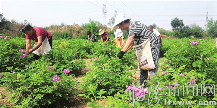 天赐玫瑰种植,因劳动强度小、效益明显,受到农户的欢迎。曲沃县南柴村以土地流转方式集中连片发展天赐玫瑰,把它当作一项农民增收致富的朝阳产业。图为农户在玫瑰园采摘玫瑰鲜花。姚俊丽 摄