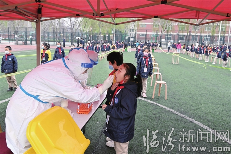 临汾新闻网讯 3月17日,尧都区在解放路学校举行全员核酸检测应急演练,5000余名教职员工与学生全员接受核酸检测。区委书记、区疫情防控工作领导小组组长崔绍民到场进行观摩指导。