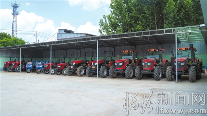 在古县垣宏丰农业发展有限公司,大院两侧的雨棚下,一台台收割机、拖拉机、除草机整装待发。公司负责人李智刚介绍:“目前,我们有大型收割机17台、大型拖拉机16台、收草机两台。农机种类全、覆盖广,能收玉米穗也能收玉米籽,满足了农户各种需求。”
