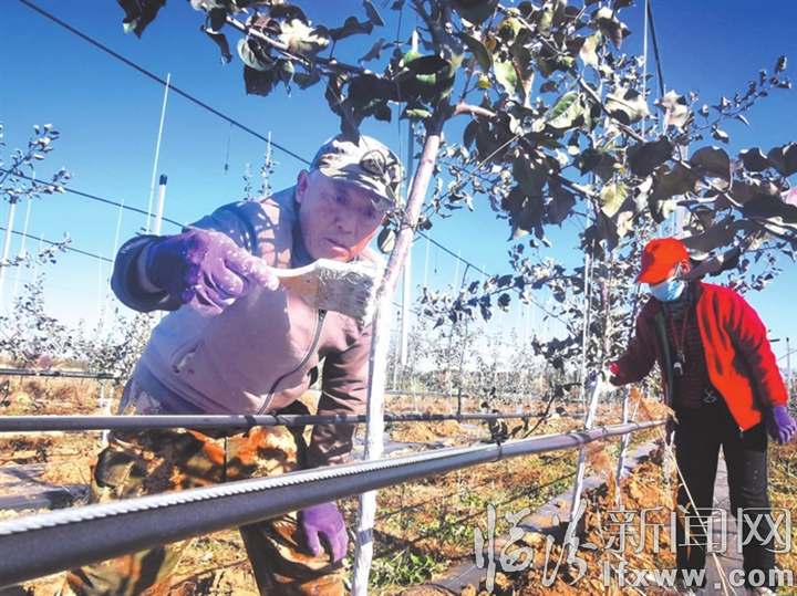走进东池村现代苹果产业示范基地,矮化密植技术栽植的果树行列整齐,智能水肥一体化灌溉设施有序运转,工人们正忙着进行冬季管护。