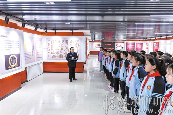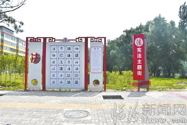 涧河西岸,移步易景。木栈道连起崇法亭、乐法亭两座两厅,“八五”普法工作成果展等8个普法版面沿着栈道一字排开,法治成语拼字游戏吸引了青少年驻足,路灯杆上是法治格言灯箱,草坪里立着法治典故小品,长廊里张贴着以案释法漫画……这是古县打造的法治主题公园,依托“十里长廊”沿河而建,将岸边绿化与党建文化、法治元素、地域特色相融合,公园法治与德治融合的理念,让群众在休闲之余能够“沉浸式”体验法治文化,“零距离”接受法治文化熏陶。