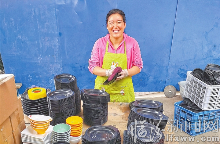时下,餐具厂以品质为先、以质量为卖点、以个性化服务为亮点,通过全方位设计满足客户需求,厂里的产品供不应求,餐具厂的生意红红火火。一边是线上线下的订单量源源不断,另一头招工福利还吸引邻村村民登门入职。45岁的孙文平是河达村村民,对于餐具厂的薪资他觉得十分满意,干得多挣得多,上班时间还弹性化。他兴奋地说,“有了餐具厂,在家门口就业,既挣了工资又照顾了家庭。”