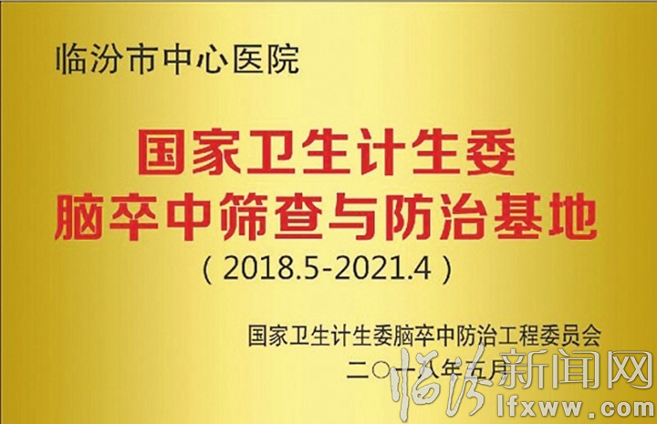 2018年5月,被国家卫健委授予“高级卒中中心建设单位”,被国家卫健委脑防委授予临汾市唯一一家“脑卒中筛查与防治基地”;