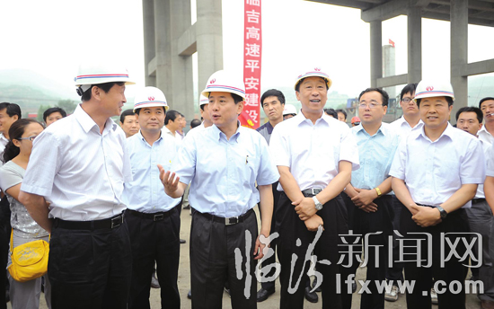 7月8日,省委常委、常务副省长李小鹏深入到所联系的省重点工程——临汾至吉县高速公路,实地查看工程建设进展情况,看望慰问了在一线施工的建设者,研究协调工程建设中的有关问题。他强调,各级各部门要充分认识临吉高速公路在我省经济社会发展中的重要地位和作用,进一步提高认识、加强协调、密切配合、共同推进工程的顺利进行,努力打造“安全工程、优质工程、高效工程、廉洁工程、阳光工程”,为促进当地经济社会的又好又快发展做出积极贡献。省政府副秘书长韩和平,省住建厅长王国正,交通厅长段建国、副厅长王志民等随同。市领导谢海、罗清宇、徐树荣、王文英、赵建民陪同。图为李小鹏在临吉高速公路七郎庙特大桥建设工地检查指导工作。