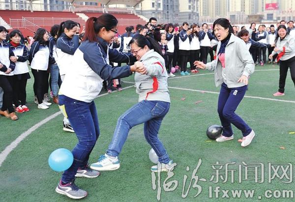 图②为临汾市解放路学校举行庆三八教职工趣味运动会。